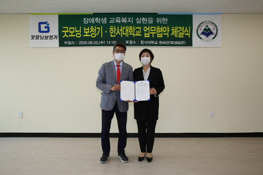 한서대 백경화 학생처장과 굿모닝보청기 충남지사 정가람 대표는 이날 △한서대 장애학생들을 위한 무료상담과 난청 관련 프로그램의 지원 △학습보조기기 기부 △장애학생의 학습과 생활의 질 향상을 위한 협력사업 추진 등의 내용이 담긴 협약서에 서명했다.